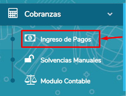 1. En el menú izquierdo seleccionar la opción "Ingreso de Pagos".