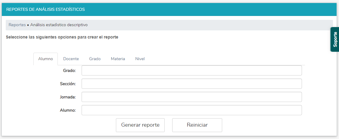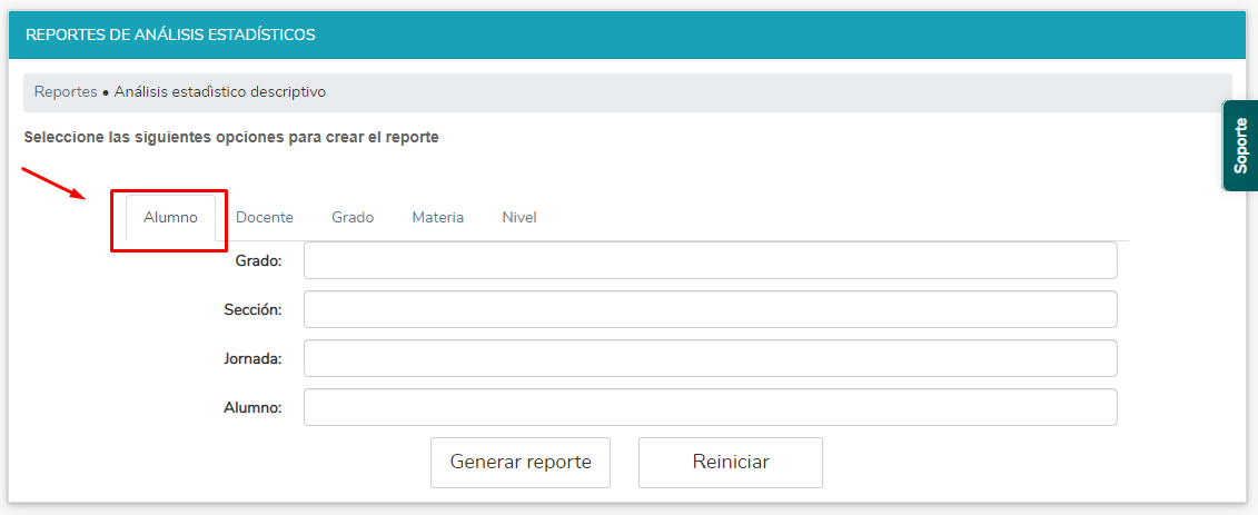 - Aparecerá el formato para generar informes en la etiqueta alumnos.