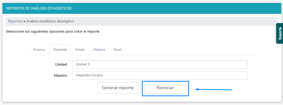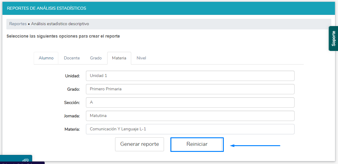 - Si desea borrar y volver a ingresar nuevos datos, haga clic en “Reiniciar”.