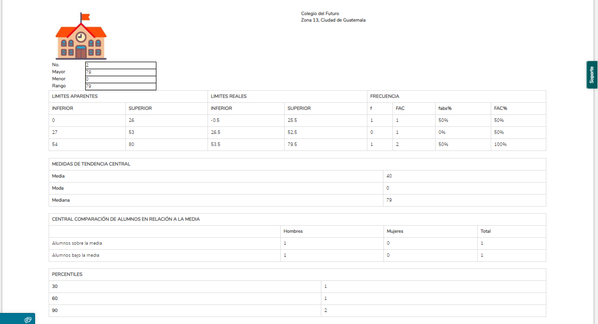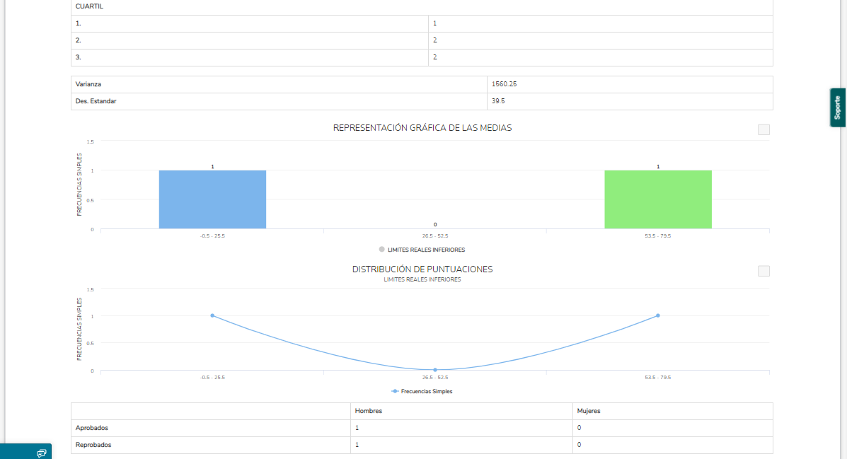Reportes de Análisis Estadístico Descriptivo en la etiqueta “Alumno”.