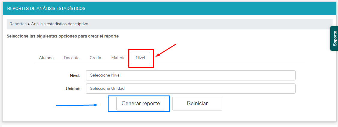 - En la etiqueta “Nivel” de igual manera seleccionamos los datos en los campos “nivel”, “unidad” y le daremos clic en “Generar informe”.