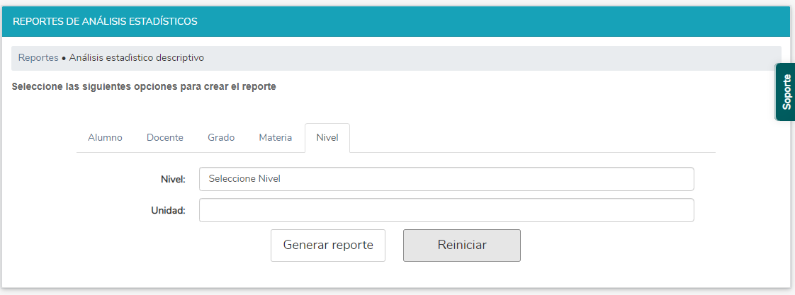 Reportes de Análisis Estadístico Descriptivo en la etiqueta “Nivel”.
