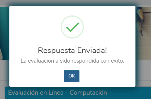 Después de presionar el botón de enviar respuesta te aparecerá la siguiente ventana en donde deberás presionar responder para finalizar tu evaluación.