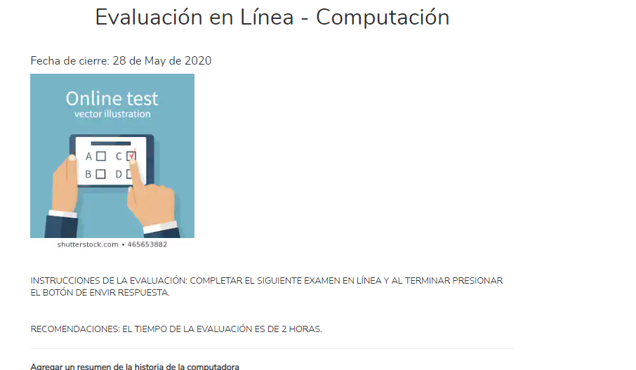 Luego de ingresar a evaluaciones en línea encontraras las evaluaciones que tengas activas y pendientes de realizar, debes de estar al pendiente de la fecha, hora de apertura y cierre debido a que no podrás realizarlo después del tiempo establecido.