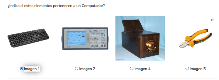 Este es otro tipo de pregunta en donde deberás escoger la imagen que tu consideres correcta.